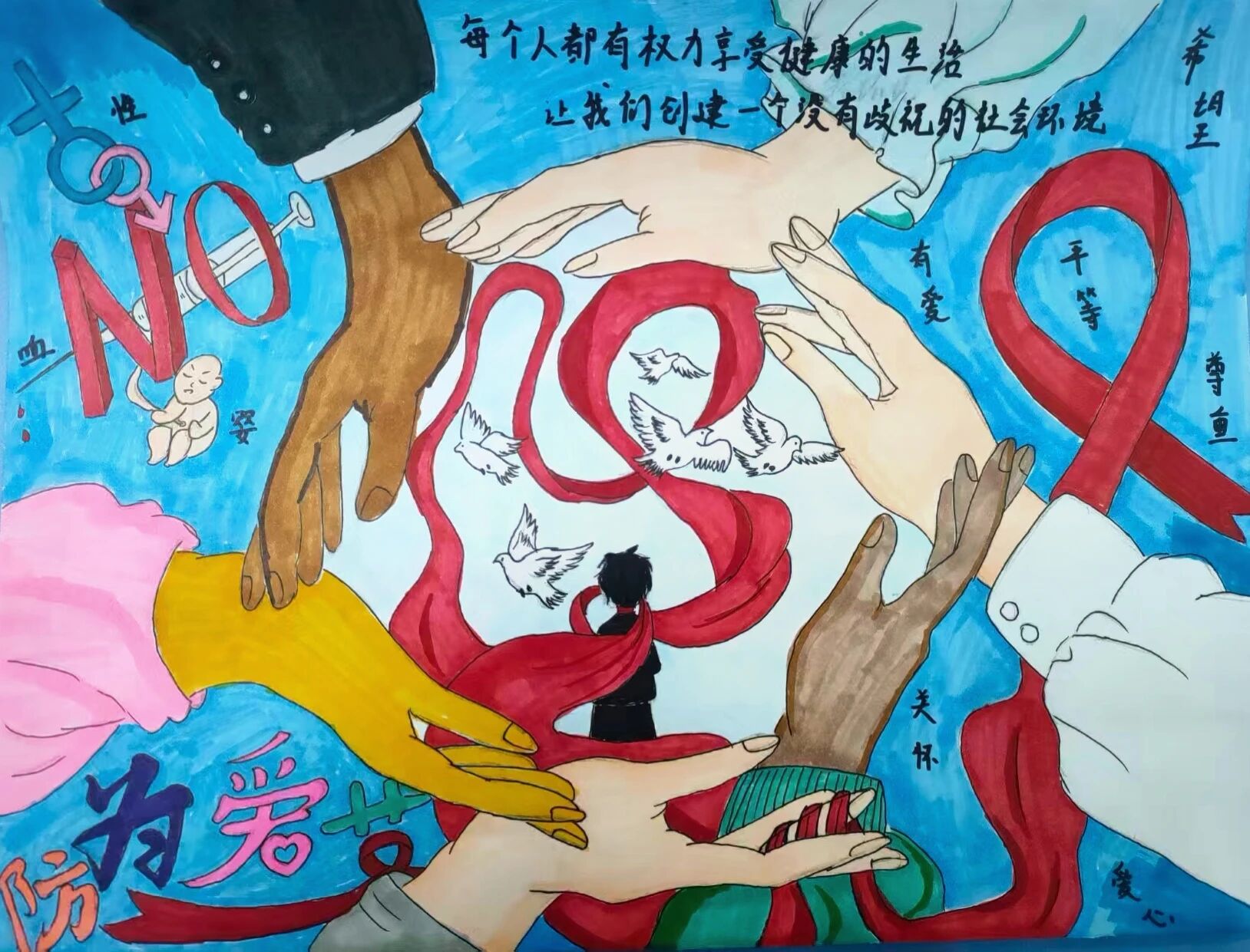 “让爱生长,让“艾”停止”。艺术是温柔的宣导,关怀是坚定的力量。感谢每一位用创作参与防艾事业的你,每一幅画、每一个字,都在帮助传递科学、消除偏见、播撒善意。预防艾滋病,不仅需要科学知识,更需要消除歧视的社会氛围。让我们从每一份平等的尊重做起,从每一次正确的了解开始。