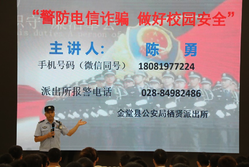 本次讲座特邀成都市金堂县户政大队罗警官、栖贤派出所陈警官、国家金融监督管理总局金堂监管支局领导及中国建设银行相关负责人等多位嘉宾到场。讲座内容围绕“国家网络安全宣传”、“网络电信防诈骗知识”及“个人银行资金信息保护”等关键主题展开。