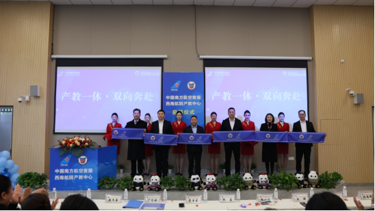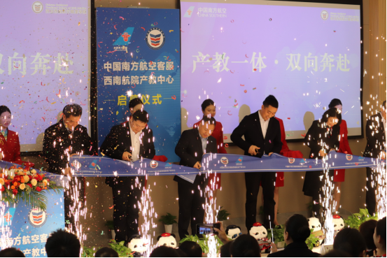在隆重的剪彩环节,校企双方领导共同执剪,标志着“中国南方航空客服西南航院产教中心”正式启用。