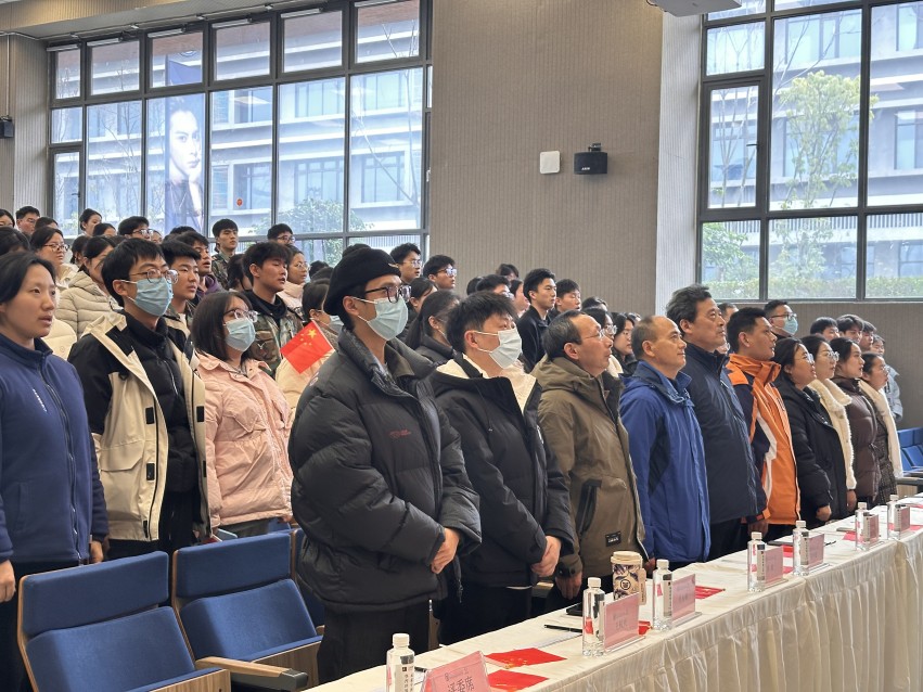 (图:全体师生齐唱国歌)