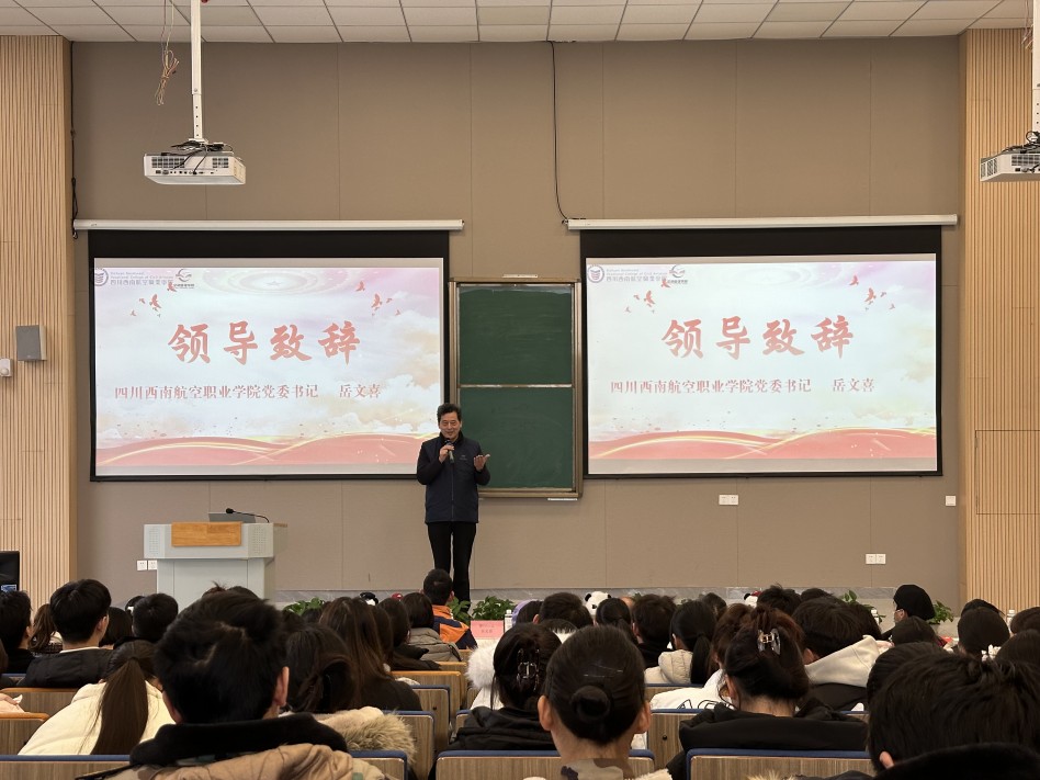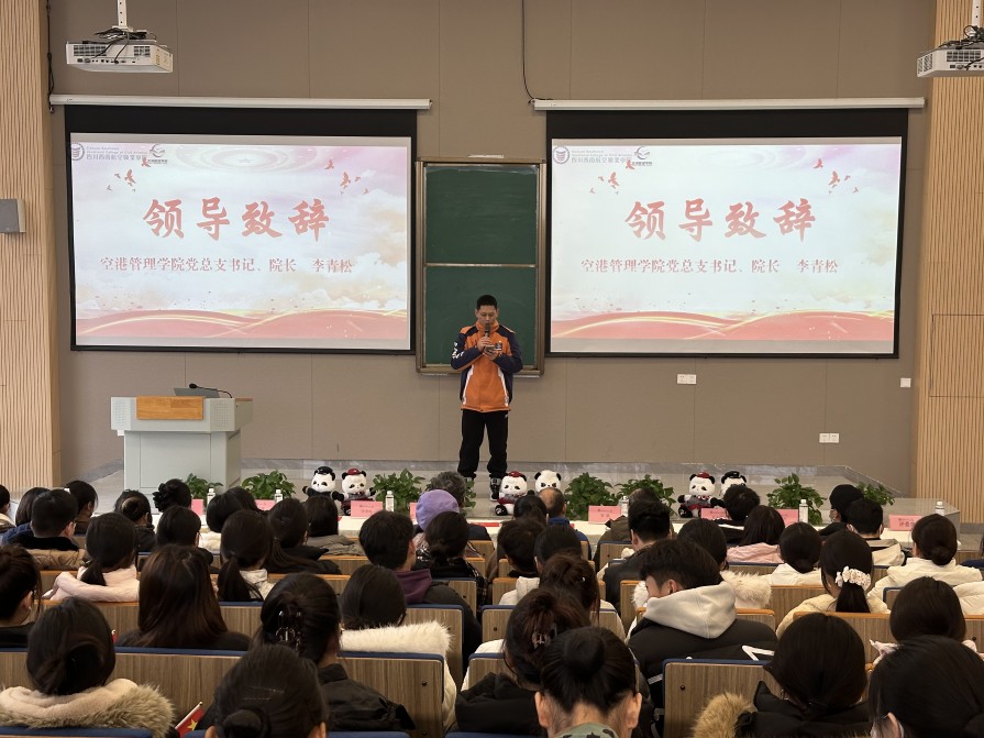 (图:空港管理学院党总支书记、院长李青松同志致辞)