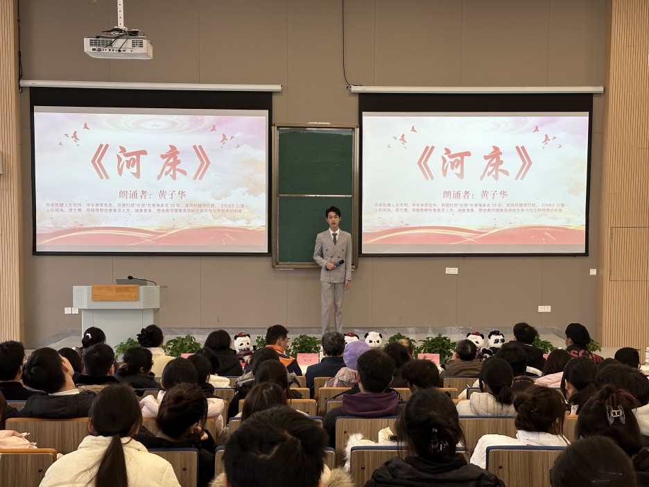 在朗诵比赛环节,参赛选手依次登台,围绕《不朽》《以青春赴山河》等作品展开深情演绎。他们以真挚的情感、铿锵的语言,再现历史场景,抒发时代心声,展现了西航学子昂扬向上的精神风貌与赤诚报国的坚定志向。