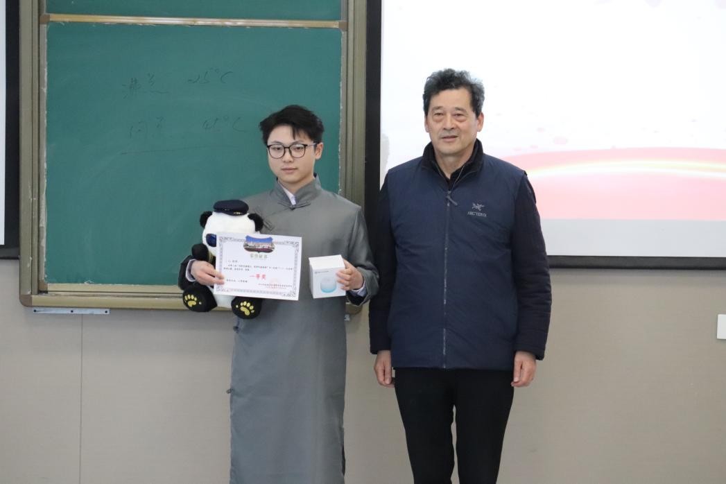 (图:岳文喜书记为一等奖选手石杨颁奖)