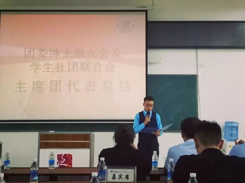大会首先是学生会(绅士淑女会)生活部王晋同学、社联宣传部部长杨知睿同学、魅力语言说协会社长刘庆阳分享了他们本学期的收获与心得。学生会(绅士淑女会)主席团代表王浩州、社联主席代表张明权对本学年的工作做总结汇报。他们以严谨认真,谦虚热情的态度向大家详细汇报了一学年以来各单位的传统活动、特色活动及其它各项工作取得的成果,并总结了在工作中的经验与不足,与大家共勉。在总结中,各部门的负责人始终将"感谢"进行到底,他们真挚诚恳的话语感动着大家,让广大学生干部感受到各组织犹如"家"的温暖。