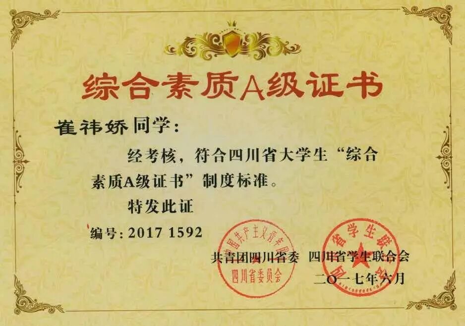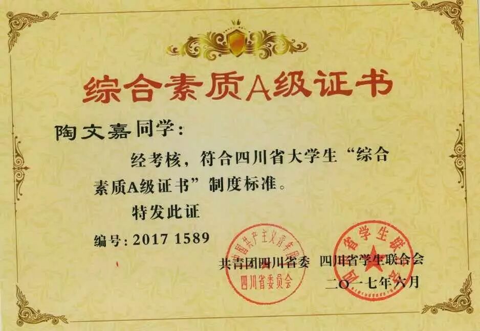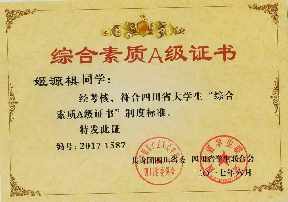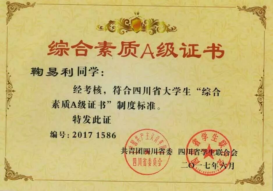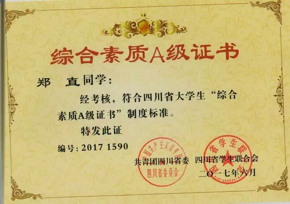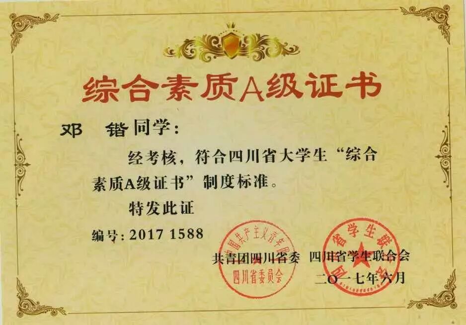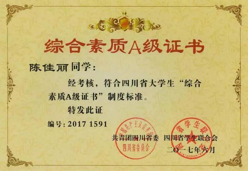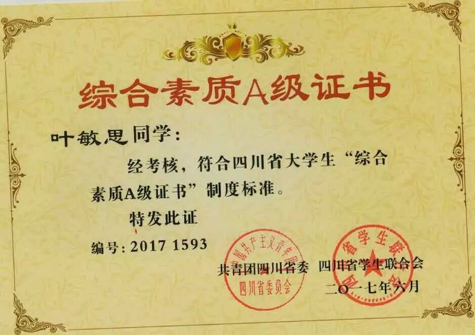 四川省大学生综合素质“A级证书”是由中国共产主义青年团四川省委员会和四川省学生联合会共同设立的,其申报制度旨在对大学生的综合素质进行有效评价,在青年学生中树立先进典型,建立正确的导向激励机制,引导广大青年学生积极向上、自立自强、奋发成才。同时向社会推荐优秀人才,为祖国建设和发展做出积极贡献。