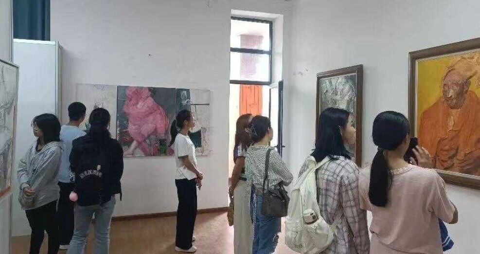 活动伊始,同学们抵达县文化馆文创楼3楼油画展览室,参观了廖新松教授的油画作品展。展览集中呈现了廖新松多年来的艺术创作成果。