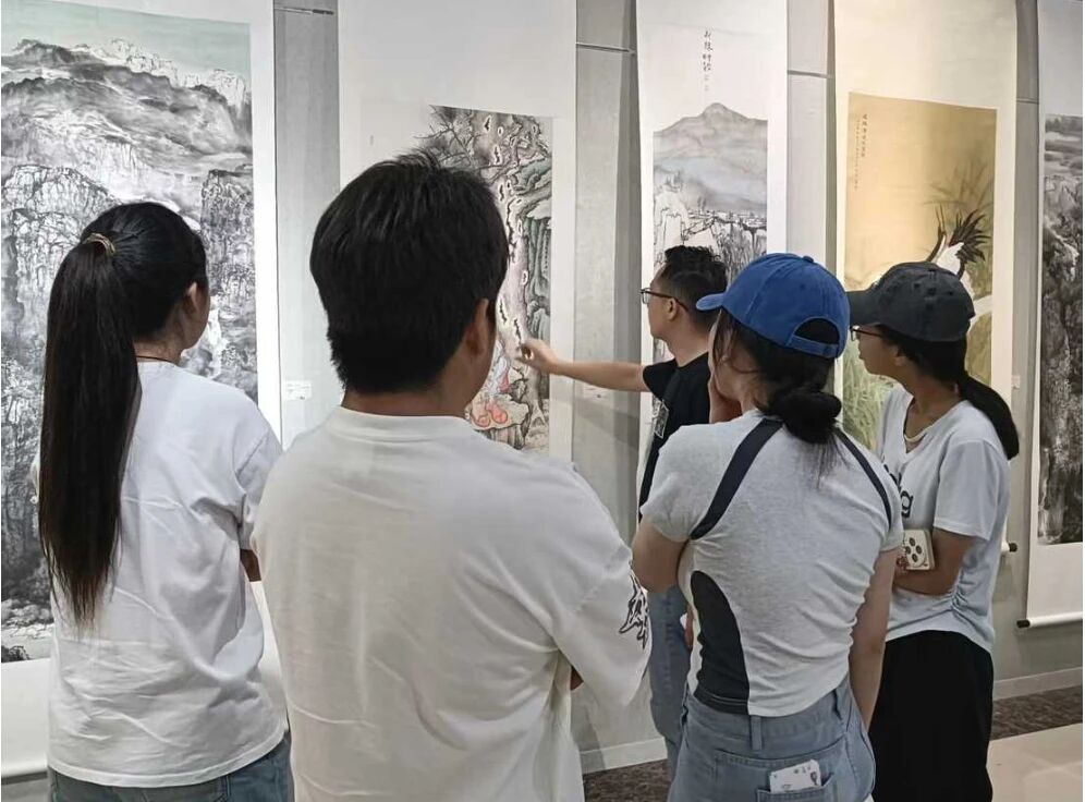 最后同学们一起参观了“国色丹青 艺韵华章”2025金堂县庆国庆迎中秋美术展,李川老师为同学们一一讲解展出的美术作品,通过此次活动同学们的艺术欣赏能力和创作水平得到了进一步提高。