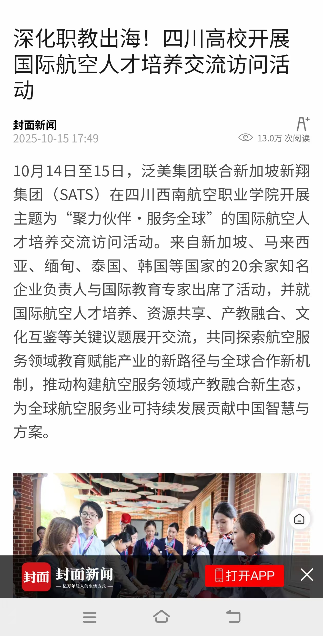 封面新闻:深化职教出海!四川高校开展国际航空人才培养交流访问活动