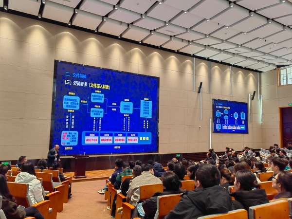 培训环节中,饶国清副院长以“以赛促教,提升质量”为主题,结合比赛内涵与相关文件精神,从赛事准备的关键环节入手,系统阐述了教案设计、教学实施报告撰写、人才培养方案与课程标准衔接、教材选用说明等核心内容的规范与创新要求。培训内容详实、针对性强,为参赛教师厘清了备赛思路,明确了提升路径,充分体现了学院“以赛促教、以赛促改、以赛促建”的育人导向。