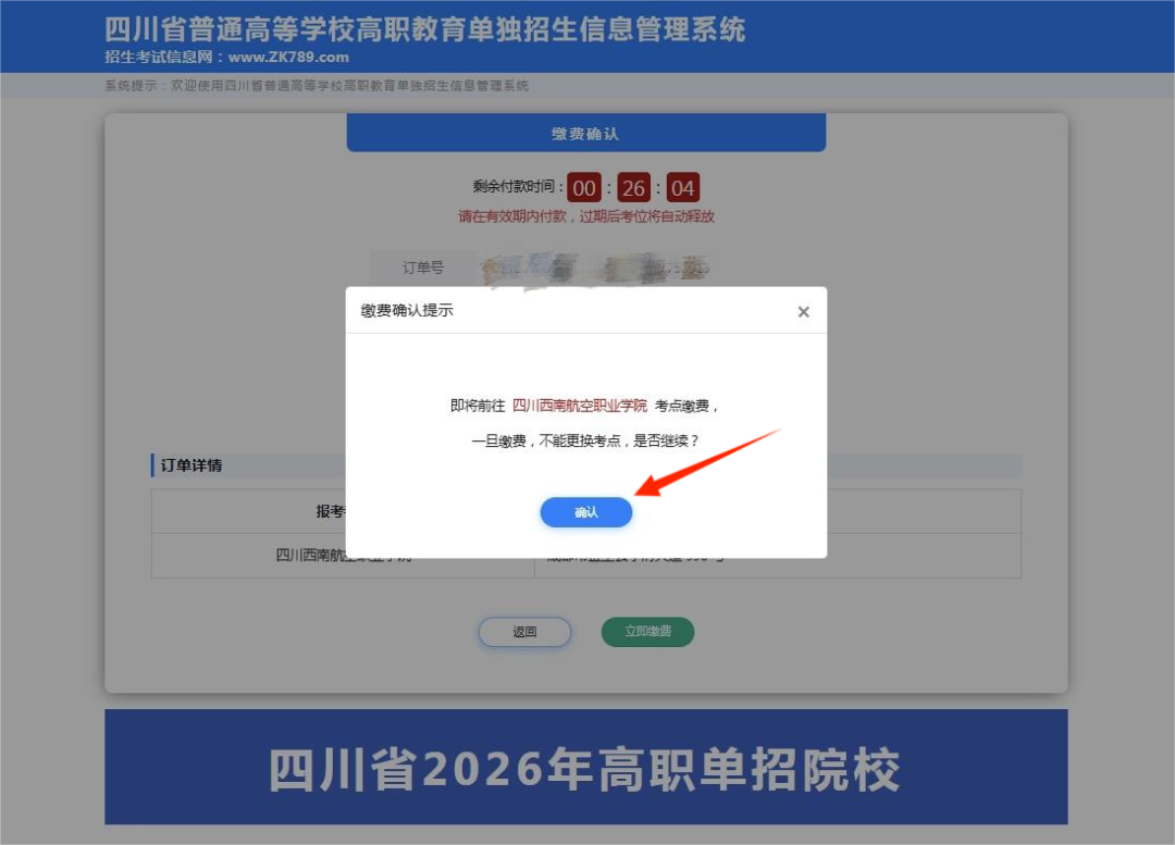 (温馨提示:缴费成功后,如需要更改是否申请录取照顾政策,可重新登录系统进行修改。)