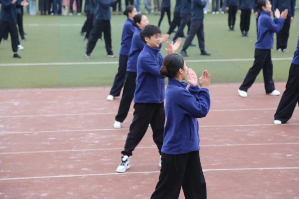 平时站讲台时优雅满分的老师们,一到热身环节,这群“端庄代表”瞬间切换画风:有人扭腰的动作带着点笨拙的可爱,脸上却还稳稳维持着微笑;有人自己先笑得眉眼弯弯,连其他动作都透着反差感,可爱得刚好戳中笑点。