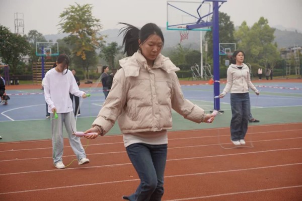 跳绳比赛中,彩绳翻飞间的灵动身姿,是学子们协调性与耐力的双重展现。从匀速跳动到极速冲刺,每一次起落都凝聚着坚持与专注,不仅跳出了青春的昂扬姿态,更诠释了 “积跬步以至千里” 的奋斗哲理。