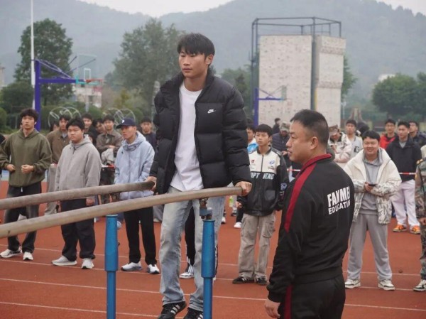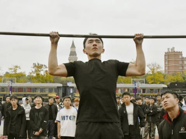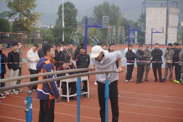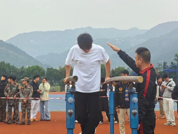 力量赛场热血沸腾,男生们用汗水诠释刚毅坚韧。单杠上,引体向上时肌肉紧绷,每一次拉升都是意志的淬炼;双杠间,支撑翻转动作行云流水,尽显力量与智慧;卧推台前,沉稳发力举起杠铃,每一次成功都伴着欢呼,用臂膀对抗极限,成为赛场最具力量感的风景线。