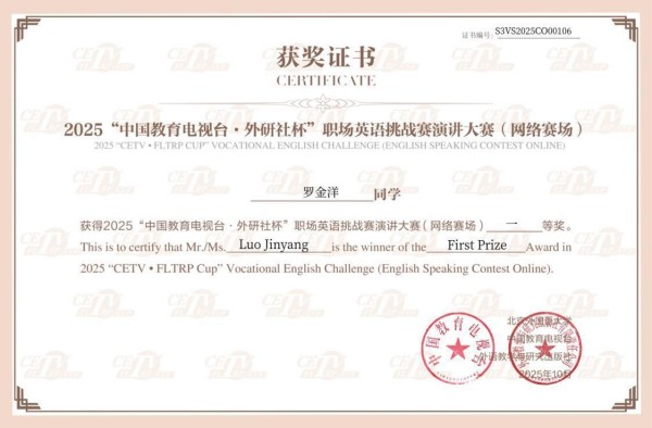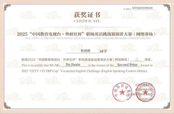 在2025“中国教育电视台·外研社杯”职场英语挑战赛演讲大赛(网络赛)中,空乘学子斩获7个一等奖、1个二等奖的优异成绩,彰显出卓越的语言表达能力与职业风采。所有获奖学生均来自我院,指导老师也均为我院专职教师。