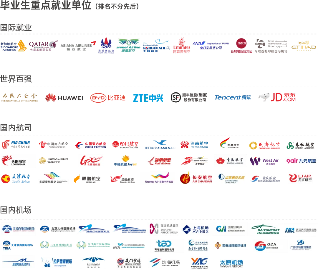 我院一直坚持把全员完善的就业服务作为办学特色之一,组建专职就业团队,集中各方优质资源保证学生就业工作的顺利开展。截止目前已有航空公司、机场、企事业单位等500余家企业与学院建立了长期的、深度的校企合作关系。