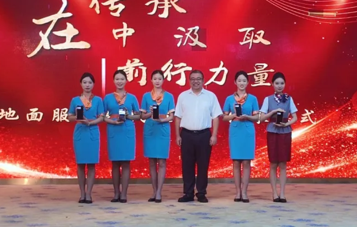 仪式中特别增设了"职业精神传承"环节——地服中心经理代表机场向学生代表赠送了寓意严谨规范的职业手册与象征责任担当的岗位工具包。这份物资传递的不仅是工作所需,更是机场三十一年来沉淀的职业精神与服务理念,寄托着对新一代从业者的期许与传承。