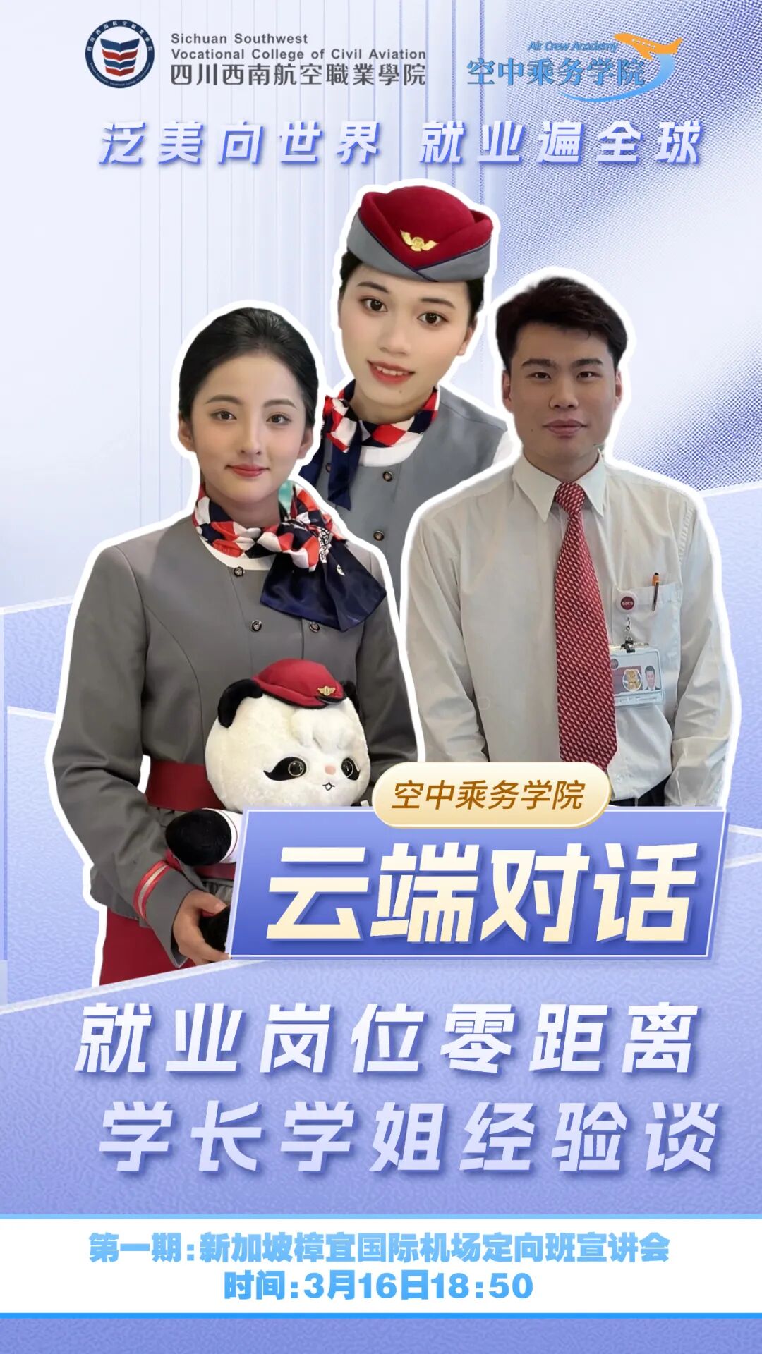 学院紧扣"春季促就业攻坚行动"部署要求,构建"多元协同、内外联动"的就业服务体系。在资源拓展方面,通过书记校长访企拓岗专项行动深化校企合作,创新开展直播带岗、订单式人才培养等特色活动,积极探索国际化就业新路径,与新加坡樟宜国际机场、新加坡航空等国际知名企业开展战略合作,打造国际化人才培养品牌项目,充分发挥校园招聘主渠道,多措并举实现岗位开发与人才培育的双向赋能。