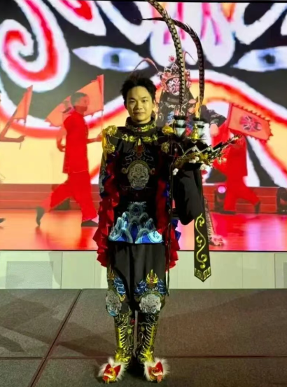 当聚光灯再度骤然刺破黑暗,我深吸一口气,满心的紧张瞬间被对变脸艺术的敬畏与赤诚取代。红脸如烈火骤然翻转为青面,再顺势猛地转身,鎏金纹样的脸谱已赫然亮相……指尖每一次利落灵动的变幻,袖间每一抹干脆利落的转身,都引得台下新加坡观众的喝彩声此起彼伏。