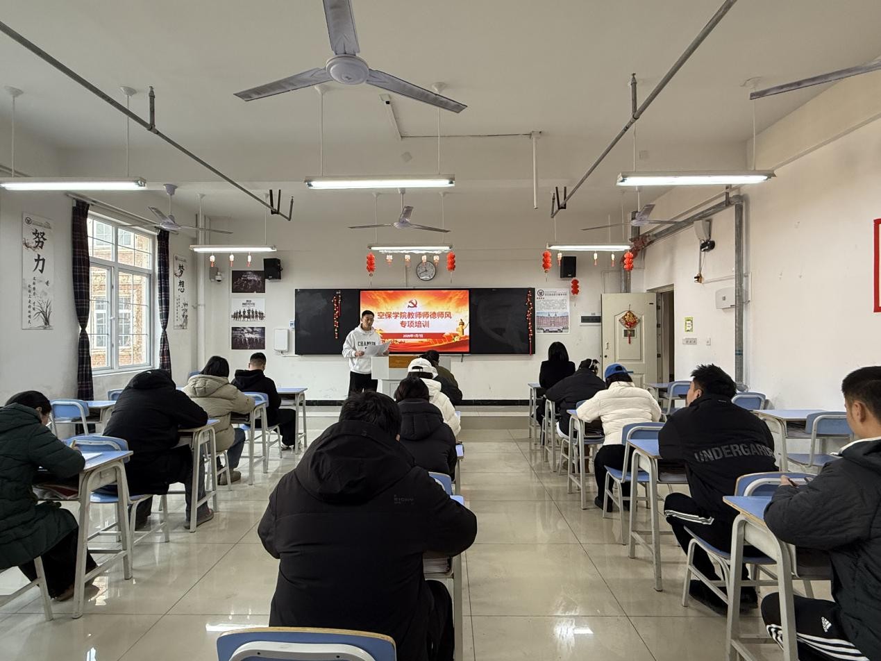 2026年1月7日下午,空保学院教工党支部召开师德师风专题培训会,集中学习《四川省教育厅关于进一步加强教师行为准则贯彻落实的通知》等师德师风文件规定精神。会议由支部书记杨路涛主持,教工党支部全体同志参加培训。