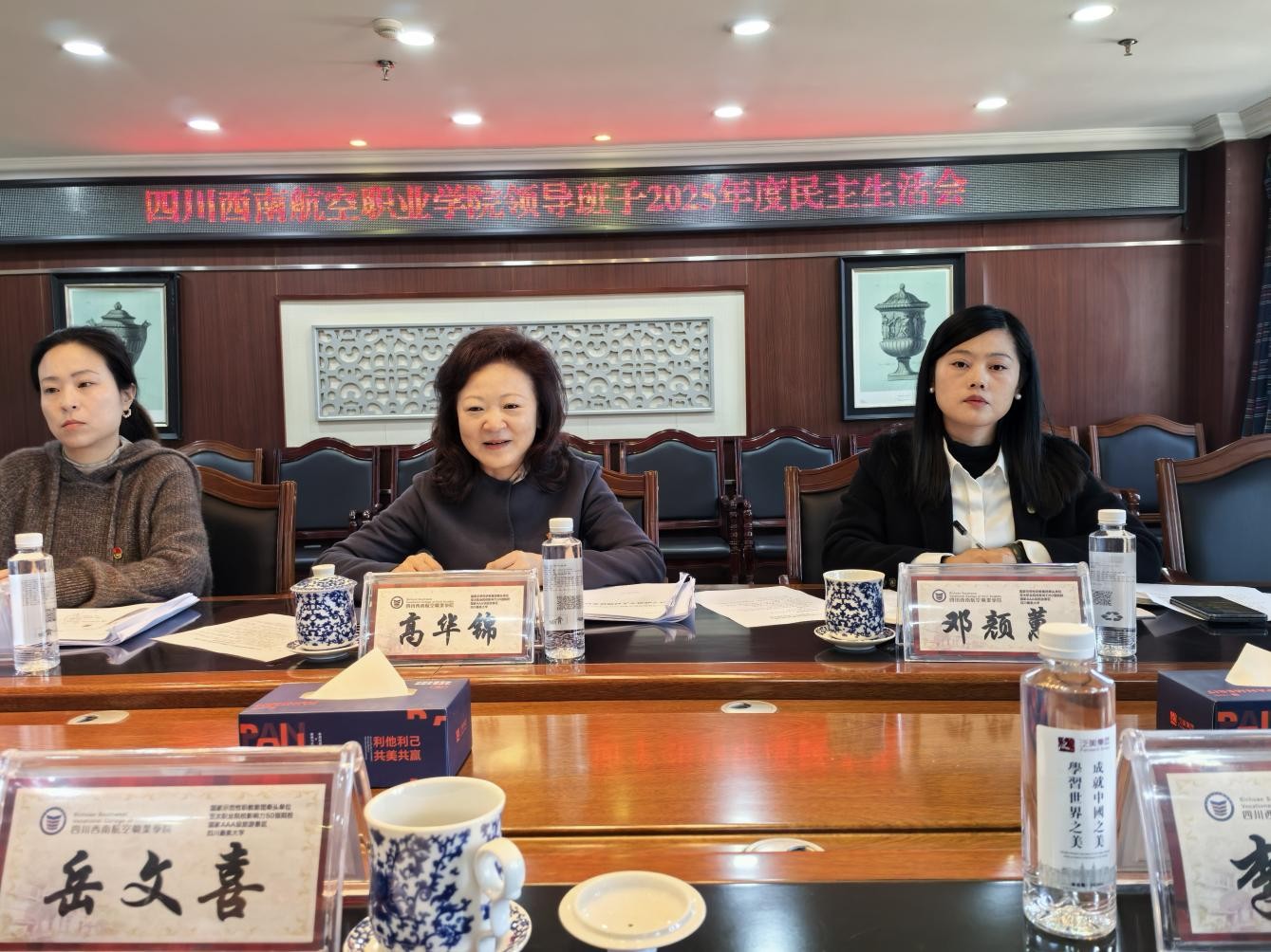 2026年2月26日,四川西南航空职业学院在一教809会议室召开2025年度党员领导干部民主生活会。会议深入学习贯彻习近平新时代中国特色社会主义思想,全面贯彻落实党的二十届四中全会精神,以打攻坚战、持久战的决心和恒心,锲而不舍落实中央八项规定精神,推进作风建设常态化长效化。学校党委书记、省政府督导专员岳文喜主持会议,学校党员领导班子成员参加会议。省委教育工委第一督导组到会指导。
