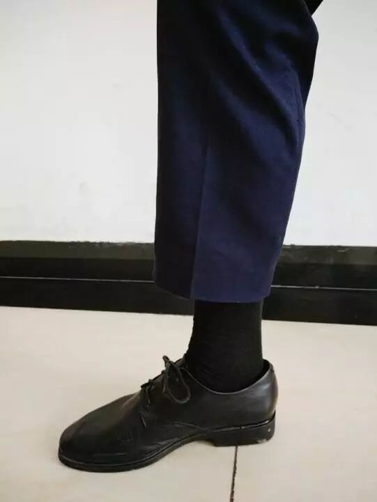 (5)着深色且长及小腿肚的纯棉质袜子,以黑色为最佳。