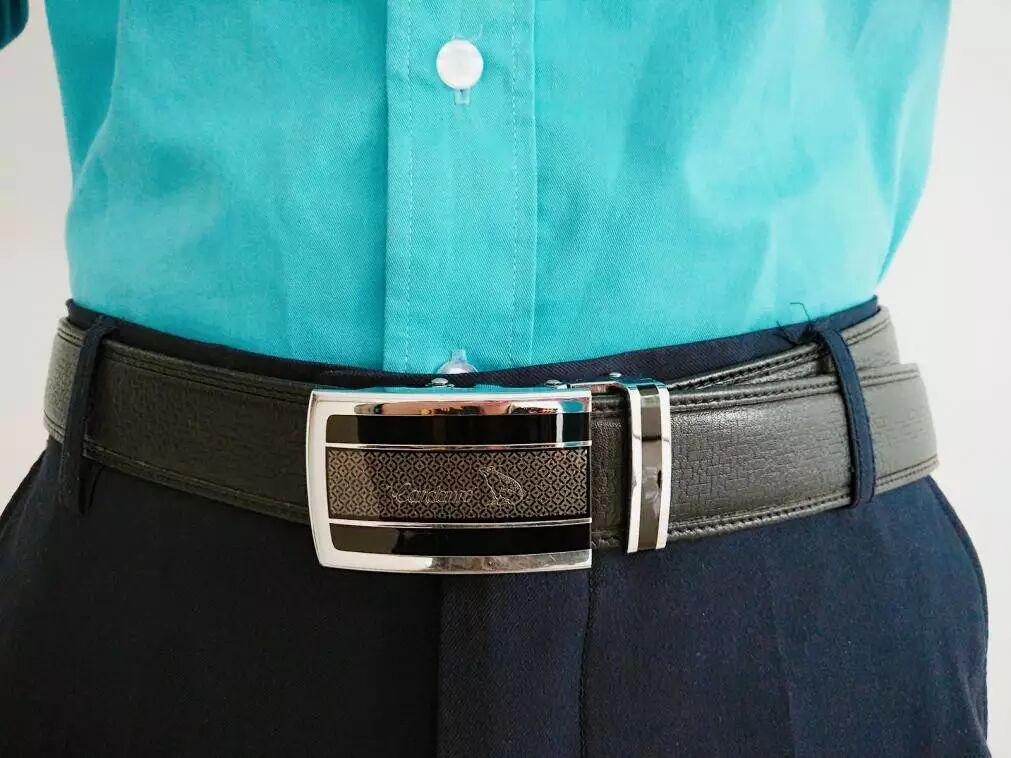 (6)系黑色皮带,样式简洁大方,皮带扣无夸张装饰。