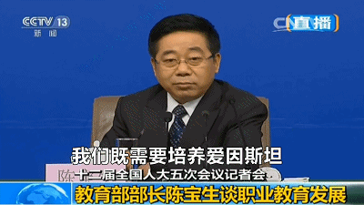 总的来说,我们国家教育的发展,建设教育强国,职业教育非常重要。和普通教育一样,是我们国家实现现代化最重要的智力保障。我们既需要培养爱因斯坦,也需要培养爱迪生,也需要培养鲁班,我们都需要。谢谢。