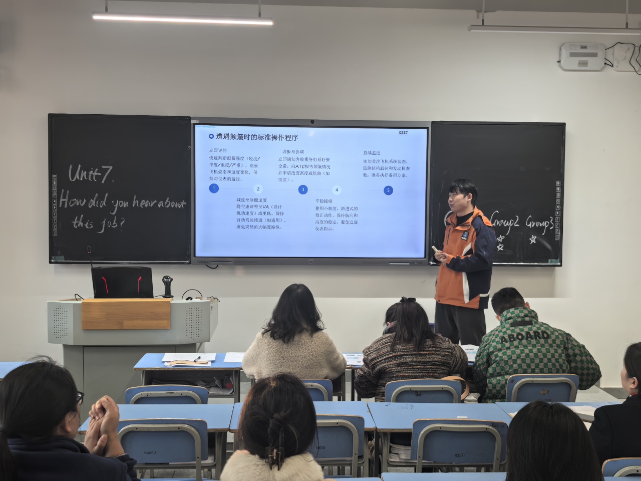 大学英语组面向无人机专业学生,基于《新生代英语基础教程2》第七单元,开展“求职面试”主题教学。团队创新构建“AI+三步五环”教学模式,将语言学习与职业场景深度结合,通过设计情景化任务,有效提升学生在真实职场环境中的英语应用能力与综合素养,探索了一条公共基础课与专业人才培养相融合的创新路径。
