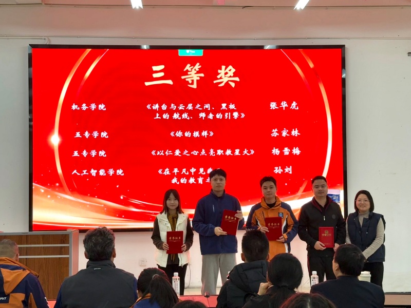 在隆重的颁奖环节,学院领导依次为获奖教师颁发荣誉证书。机务学院张宇轩,五专学院苏家林、杨雪梅,人工智能学院孙刘等4位老师荣获三等奖;机务学院刘瑶、张华虎,空港管理学院吴何慧,马克思主义学院穆晓梅,空保学院康钦俊等5位老师荣获二等奖;五专学院王娇娇、马克思主义学院黄晓丽、空中乘务学院刘领等3位老师荣获一等奖。全场以持续的热烈掌声,向获奖者致以最诚挚的祝贺与敬意。