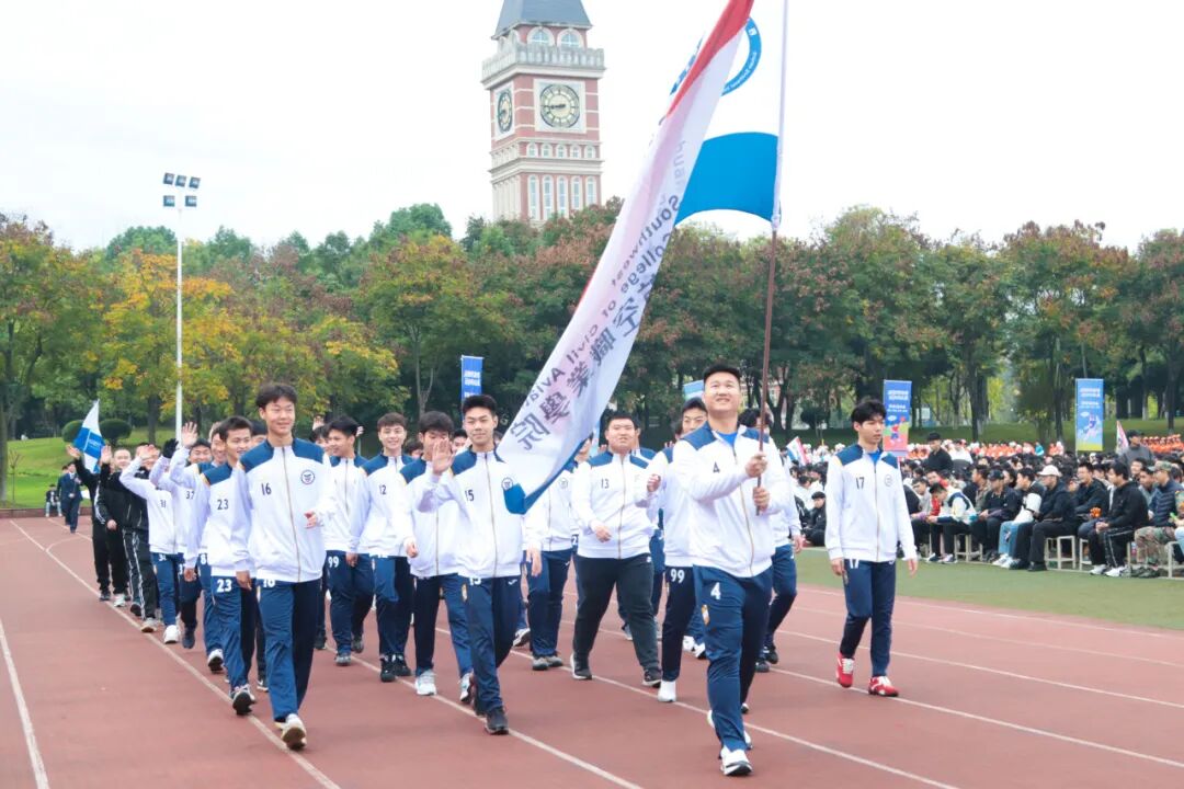 校足球队们身着统一队服,身姿挺拔如松,每一步都透着民航人的严谨与力量,更裹挟着绿茵场的热血与豪情。各学院代表队以昂扬之姿阔步走过主席台,他们步伐矫健踏出青春鼓点,热情洋溢,点燃赛场激情......