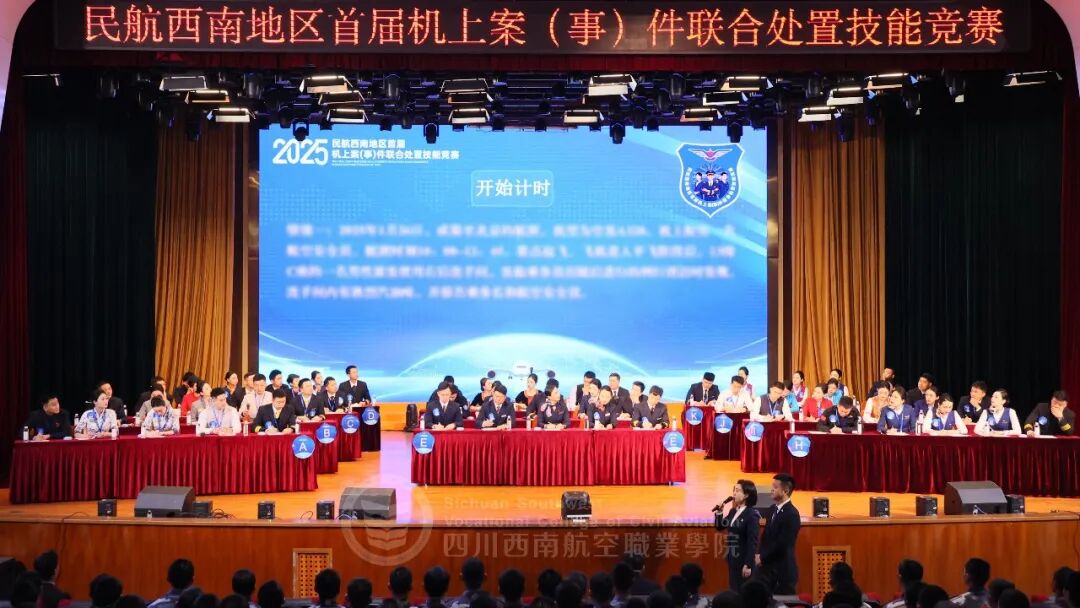 12月17日-19日,2025民航西南地区首届机上案(事)件联合处置技能竞赛在我院圆满落下帷幕。本次竞赛吸引了来自西南地区11家航空公司的精英机组参与。在为期三天的赛程中,各参赛队伍围绕机组三方协同处置能力,展开了涵盖理论、实操、协同与决策的全方位专业较量,成就了一场高质量、高标准、高规格的行业专业技能盛会。