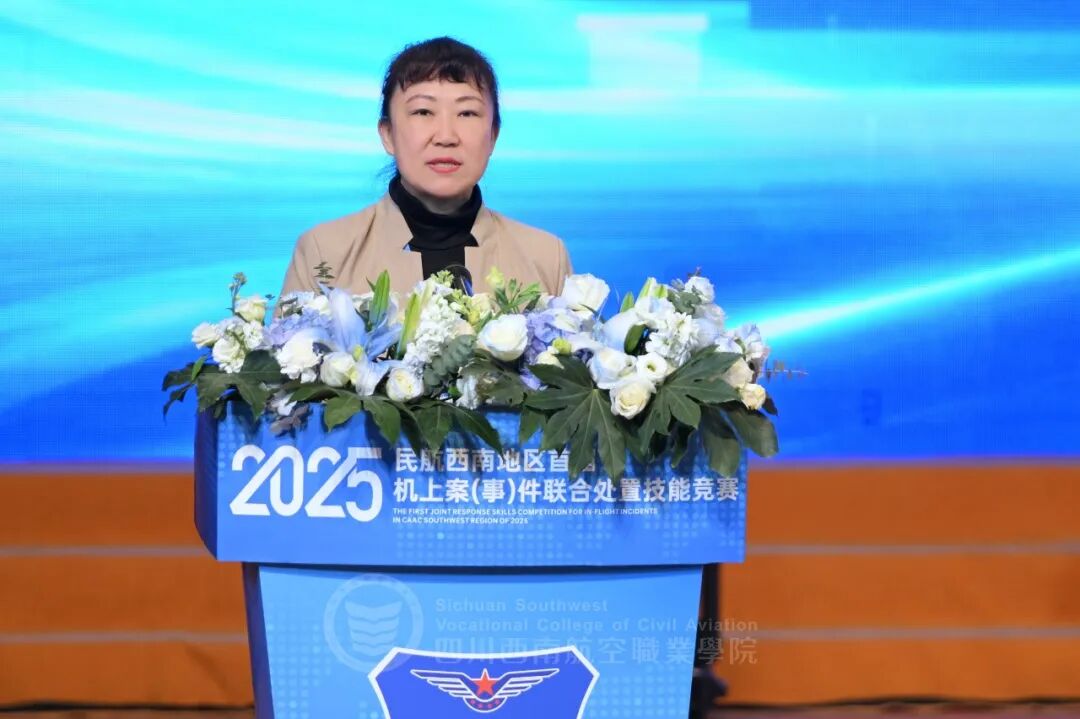 闭幕式上,民航局公安局勤务处副处长刘晓璐致辞。她表示,本次竞赛是西南地区民航系统的一件盛事,对各单位的精心组织与全力保障表示感谢。她强调,当前空防安全十分重要,希望各单位将竞赛中锤炼的实战能力与协作精神,切实转化为守护客舱安全、应对风险挑战的实际行动,坚决筑牢安全底线。