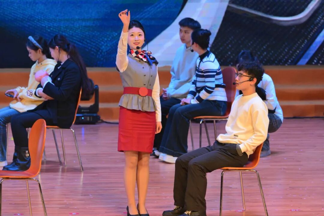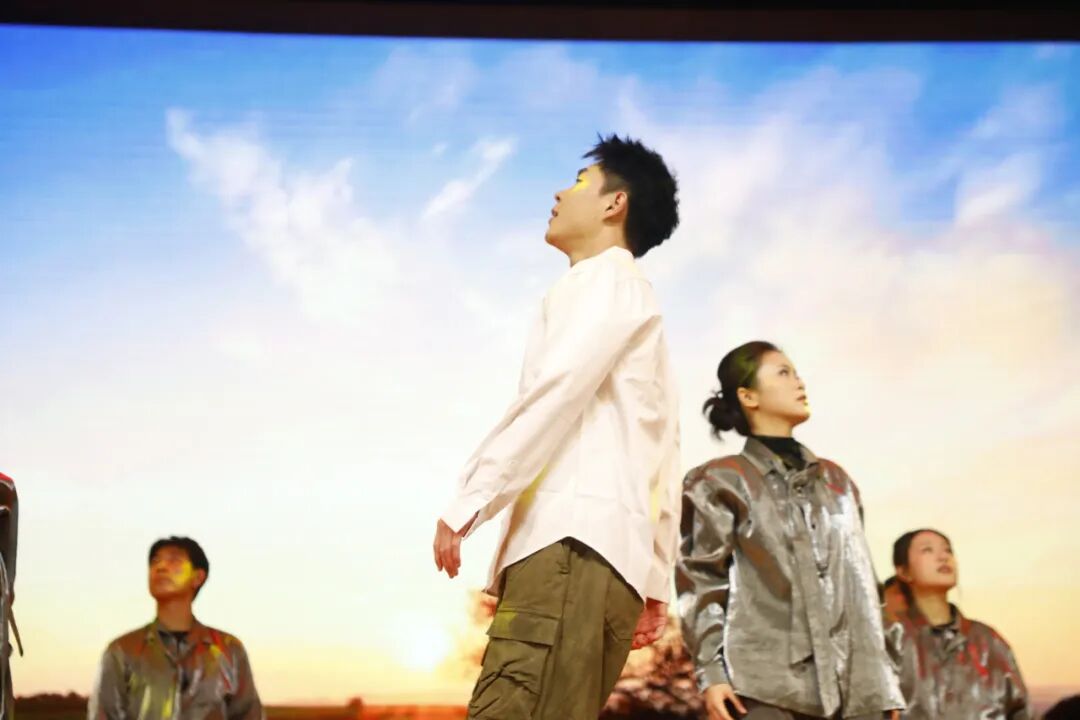 《蓝天铸盾》空中乘务学院指导老师:王艳,万米高空的守护被搬上舞台。严谨的指令、默契的配合、沉着的神情,再现了客舱内化险为夷的紧急时刻。这是一场没有硝烟的“战斗”,更是西航学子专业精神与责任担当的铮铮誓言。