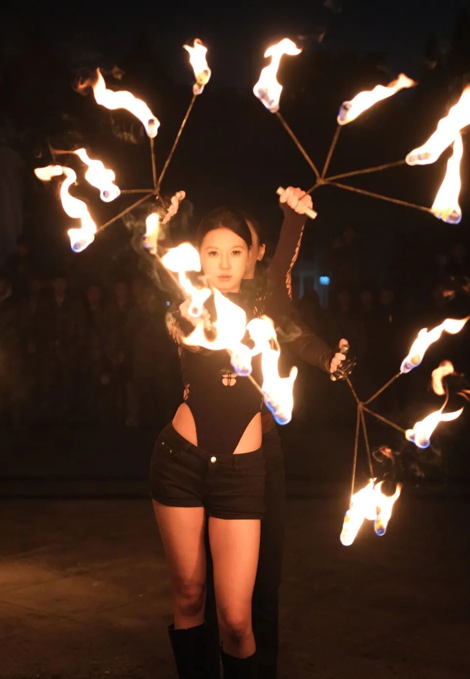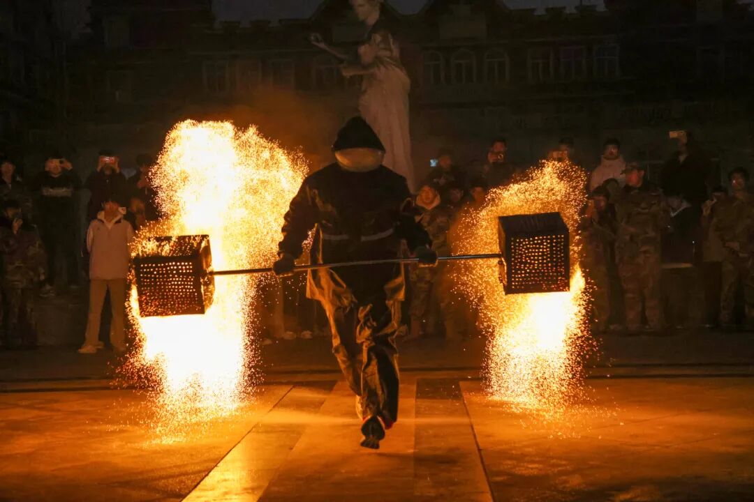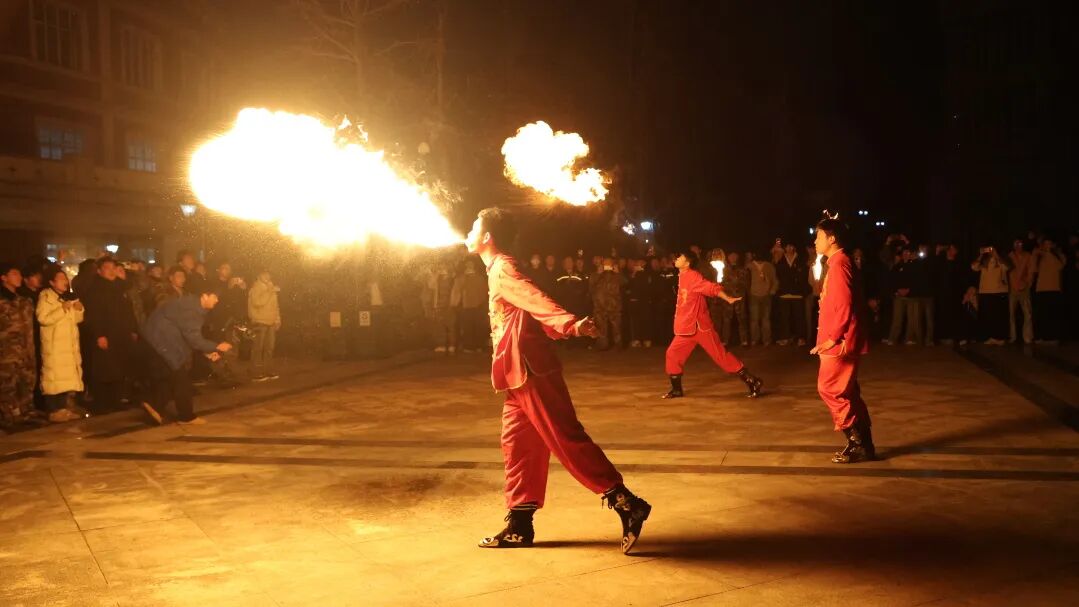《焰舞迎新》非遗展示千年技艺点燃夜空,喷火表演烈焰冲天,气势如虹;火魔方流光转动,奇妙绚丽;火扇翻飞似蝶,柔中带刚;火壶舞动生风,炽热奔腾。火焰在夜空中交织绽放,仿佛千年技艺在此刻复活,瞬间点燃全场激情。线上线下观众同步屏息凝视,共同感受这场直击人心的火热盛宴。