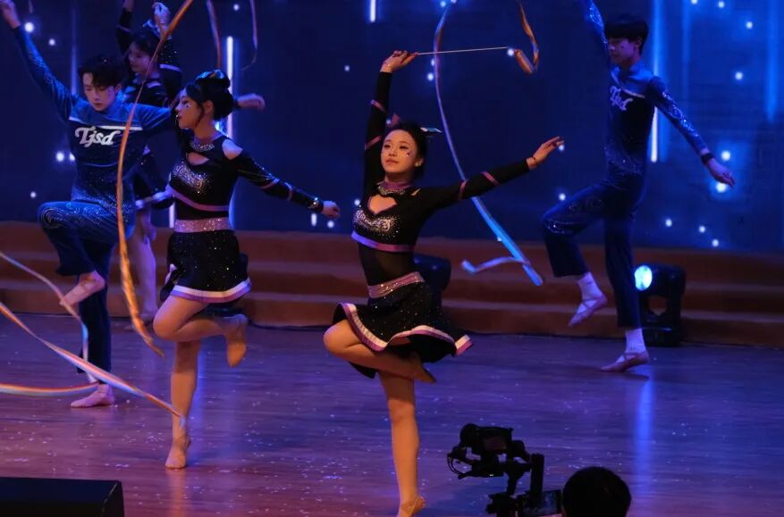 《爵色魅影》空中乘务学院指导老师:张文玥 樊璐,爵士的节奏与青春的活力碰撞,舞步洒脱,转身惊艳,瞬间点燃了全场的热情。紧接着,在灯光下,她们以身体诉说前行,步履坚定,向光而行,赋予每个人内心生长的力量。