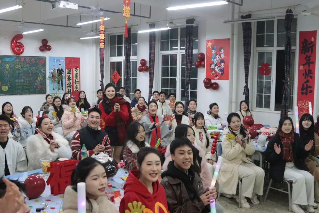 万众期待的抽奖环节,“拥抱”式抽奖将新年的喜悦与幸运传递至每个角落。不仅在主会场,教室里收看直播的同学们也同步欢呼、彼此祝福,实时共享这份温暖的高潮。难忘今宵,今宵难忘,悠扬歌声中晚会圆满落幕,而精彩仍在延续。2026,我们携手启航,共迎绚烂。