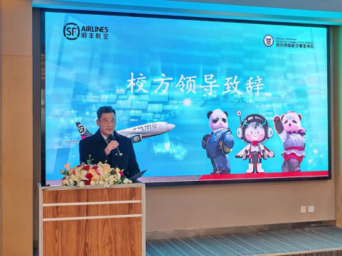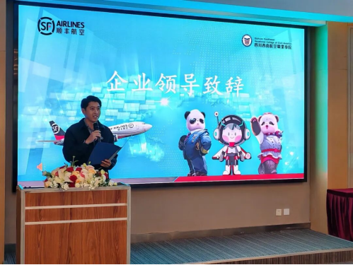 顺丰航空保卫部总经理赵恺华在致辞中介绍了企业的发展前景与人才需求,并鼓励同学们把握机遇,在未来的职业道路上实现自我价值。