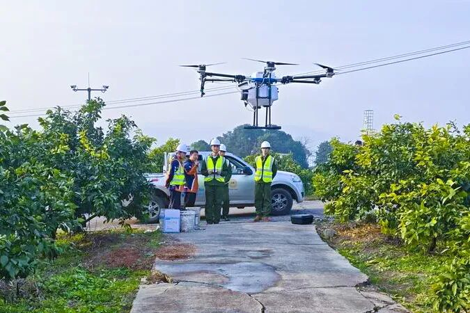 据学院相关负责人介绍,此次助农行动并非单次试点,而是常态化服务的延伸。早在2025年12月,学院师生就曾走进金堂天府橘乡爱媛橙种植基地,开展无人机植保技术科普与病虫害防治示范。虽仅作业10亩,却为学院无人机植保技术在金堂农业领域的推广打开了一扇窗。此次大规模作业,正是前期技术积累、市场对接的成果体现。从1月至2月的地块对接、作业报备、技术培训,到3月至4月的现场规范作业,再到后续的效果跟踪、总结归档,四川金堂经开区产教融合部、街道办、泛美智飞与学院各司其职,构建起安全、技术、后勤三重保障体系,让植保作业既专业高效,又安全有序。接下来,师生团队还将奔赴高板街道,为100余亩小麦田开展不同生长期的病虫害综合防控作业,持续以科技服务筑牢农业生产防线。