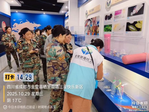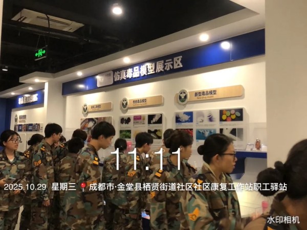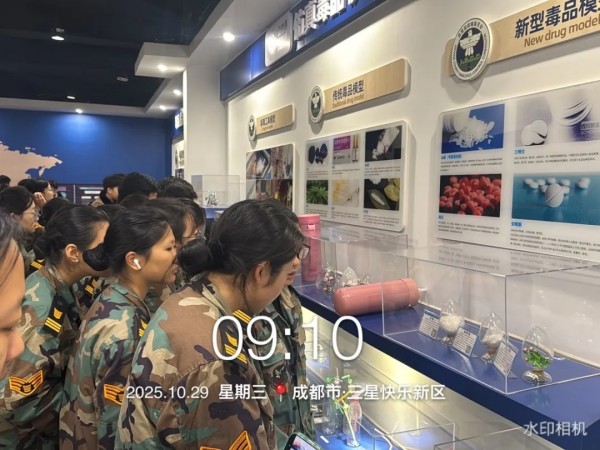 在专题讲座的基础上,学院组织全体学生分批次前往禁毒教育基地开展实践学习。各班级在辅导员与教官的带领下,有序进入基地参观学习。通过实物展示、影像资料与互动体验,同学们直观认识了各类毒品的形态与危害,深刻理解了禁毒工作的重要性。