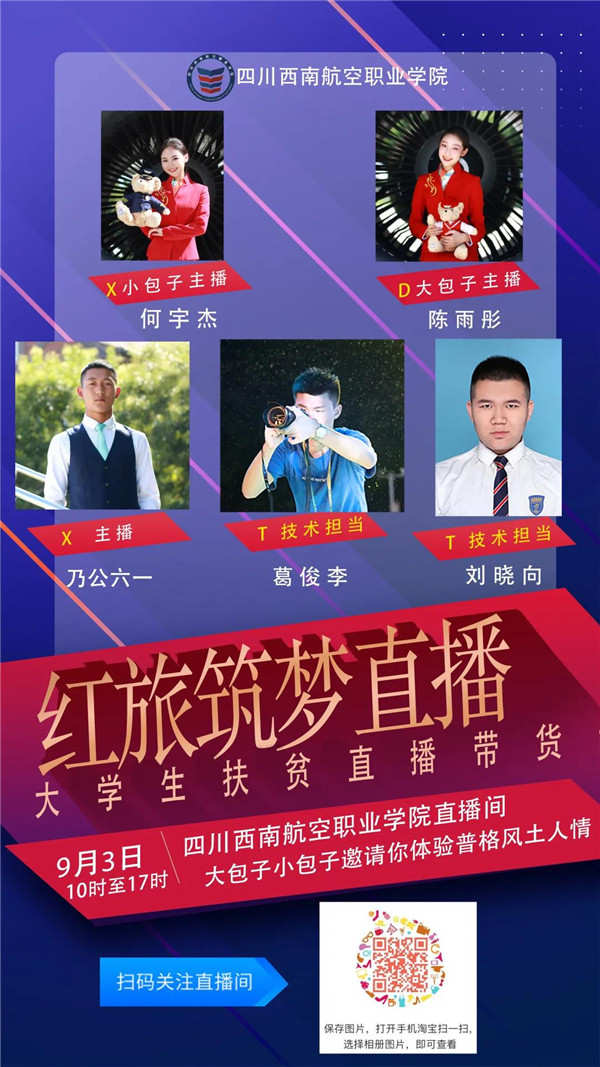 为助力精准扶贫,促进四川省“青年红色筑梦之旅”电商直播活动取得扶贫实效,推动创新创业教育与思想政治教育的融合,打造四川红色文化育人品牌,引导大学生深入基层一线,了解国情民情,在创新创业中增长智慧才干,在艰苦奋斗中锤炼意志品质。四川省组织省内大学生创新创业团队于9月3日开展“红旅之星”直播比赛活动,以购代捐,助力脱贫。