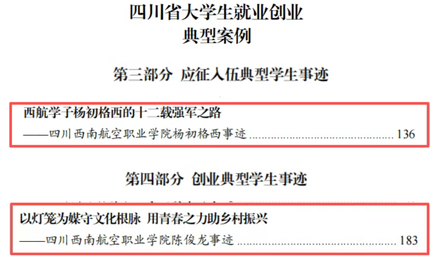 《以灯笼为媒守文化根脉 用青春之力助乡村振兴》:2020年毕业生陈俊龙,放弃空乘就业机会,毅然返乡接过传统灯笼产业。他运用在校培养的创新思维与管理能力,推动“传统工艺+现代科技”融合,引入电商直播开拓市场,将产品远销海外。他带领的工厂带动周边上千名村民就业,助力当地形成年产值超7000万元的灯笼产业集群,成为高校毕业生返乡创业、助力乡村振兴的生动典范。