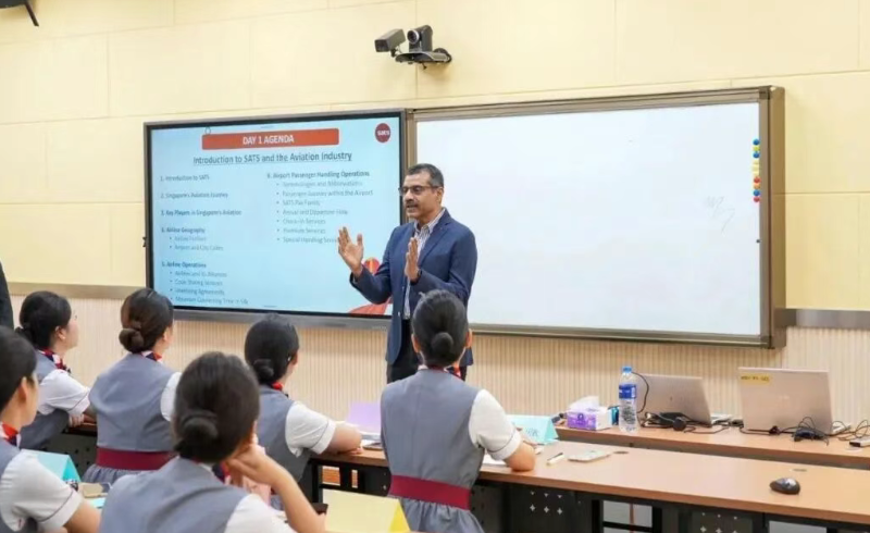 为保障育人质量,学院首创“跨国挂职+本土实践”师资培养模式,选派骨干教师赴新加坡机场等一线岗位实践,将前沿服务标准转化为58个教学案例。这支“双师型”教学团队有力支撑了教学创新,使学生上岗培训时间大幅缩短,相关经验已在多所同类院校推广,形成了可复制的国际人才培养范式。