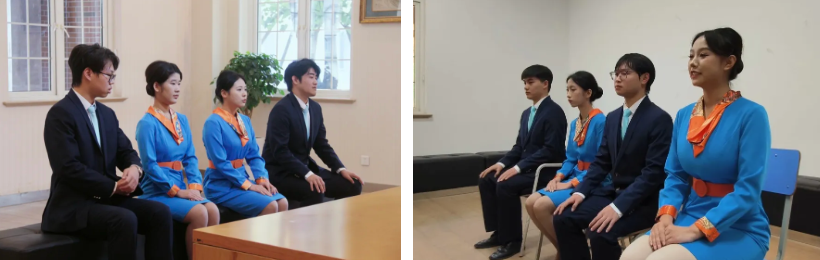 面试现场布置规范,秩序井然。同学们身着正装,手持精心准备的简历,自信满满地步入面试场;面试场外,等待的同学互相加油鼓劲,尽显民航学子的团结与朝气。