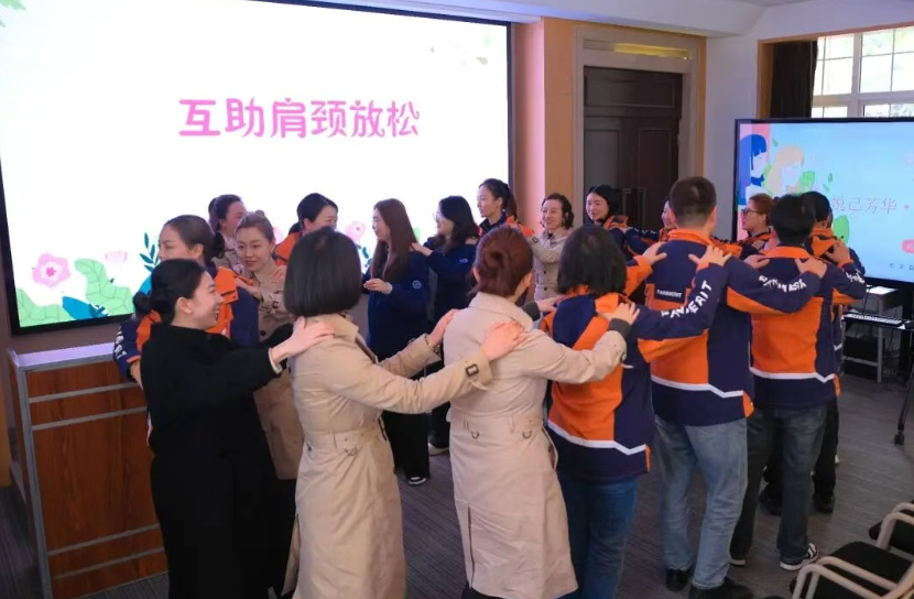 活动伊始,大家围圈而立,互相按压肩颈、轻敲肩膀。平日里伏案工作的疲惫,在同伴的掌心下一一揉散。那一刻,我们不只是同事,更是彼此支持的家人。