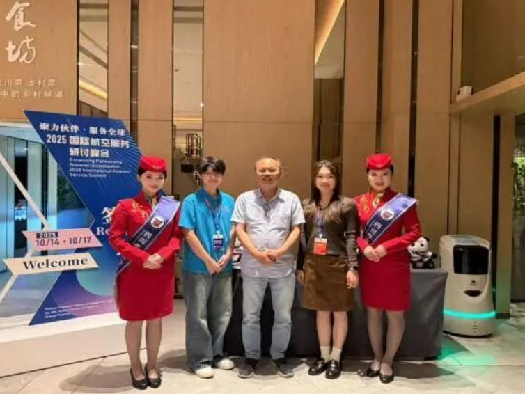 2023级新加坡航空天使班,张宇昕Tiki。此次负责一对一接待各国嘉宾,从机场迎接到校园导览,这段经历让我重新认识了“服务”的深刻含义。在天府机场迎接泰国嘉宾时,我手捧鲜花相迎,随即自然地接过行李;沿途讲解地标时,不忘适时递上矿泉水。虽然英语表达不算流利,但嘉宾专注的倾听给了我莫大的鼓励。与韩国嘉宾用餐时,我们从泡菜文化聊起,一句关切的“Is it enough?”,换来他满足的“Enough,thank you”。那一刻我豁然明了:服务从来不是单方面的付出,而是善意与温暖的双向流动。