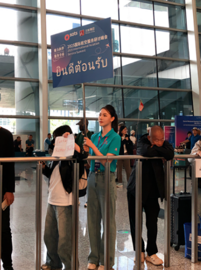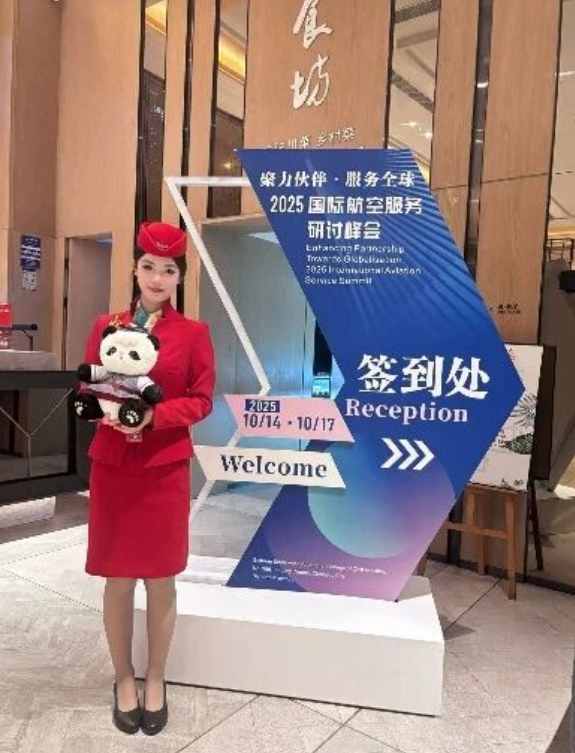 2024级新加坡航空天使班,谢雨航Cassiel。在本次活动中,我担任礼仪志愿者,得以近距离接触全球航空业专家,对服务的国际化与精细化有了更深体会。我以微笑代替语言,以手势传递友善,引导嘉宾完成签到;也主动向他们介绍成都文化。这样的双向交流,不仅锻炼了我的跨文化沟通能力,更让我收获了深厚的文化自信。我深刻体会到,礼仪远不止是动作的规范,更是一种发自内心的共情与关怀。未来,我愿继续在每一个细节中打磨自己,让服务在专业之上,更有人情的温度。