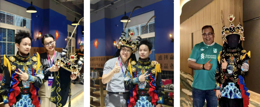 演出落幕,不少观众带着满心好奇围拢过来,用英文热切询问变脸的奥秘。在西航学姐的暖心翻译下,我细细为他们拆解脸谱里“忠奸善恶”的文化寓意,把川剧背后的传承故事娓娓道来。他们眼中的惊叹与十足的热情深深打动了我,纷纷盛情邀请我再展绝技。盛情难却,我再度登台,让变脸的神奇魅力又一次在狮城的舞台上绽放。