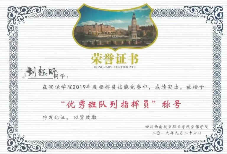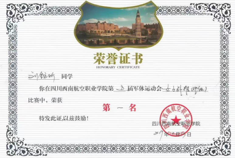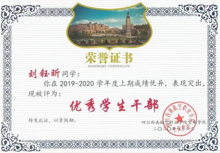 刘钰昕同学是泛美教育集团旗下四川西南航空职业学院2022届毕业生,民航空中安全保卫专业。在校期间,她始终秉持“高标准、严要求”的准则,严于律己,积极投身于反恐社团、学生会工作及各类校园志愿服务,展现出卓越的综合素养与责任担当。凭借优异表现,她多次荣获“校级优秀学员”“校级优秀先进个人”“校级优秀学生会部长”等荣誉称号。