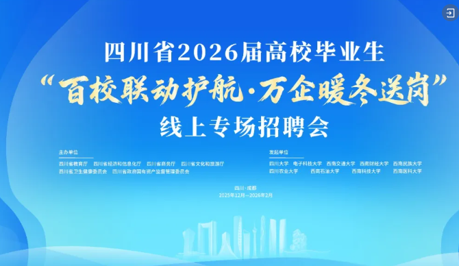 川e就—四川大学生就业服务平台(网址:https://bigdata.scbdc.edu.cn:8888)自2025年12月下旬起,四川省教育厅联合多部门举办四川省2026届高校毕业生“百校联动护航·万企暖冬送岗”线上专场招聘会,截至目前,活动已吸引1100余家用人单位在线纳才,涵盖事业单位、国有企业、民营企业等多种类型,涉及电子信息、装备制造、食品轻纺、能源化工、生物医药等多个领域,能够全方位满足毕业生的多元化求职需求。同学们可随时登录平台查询岗位、投递简历、参与线上沟通。
