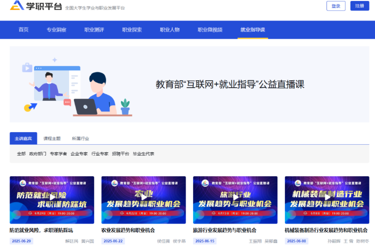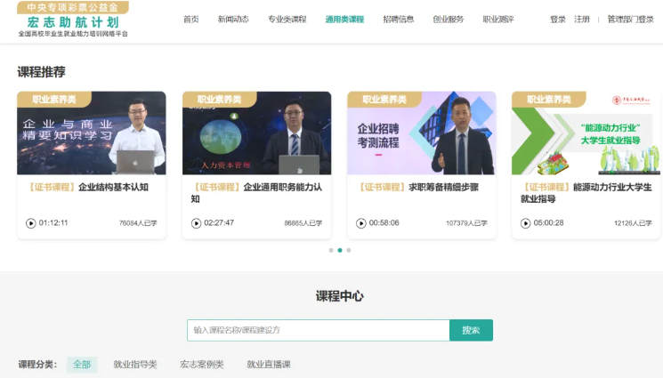 网址:https://hzzh.chsi.com.cn/平台课程涵盖各个行业、职业方向的就业能力提升。进入平台可选择“专业类课程”或“通用类课程”学习。